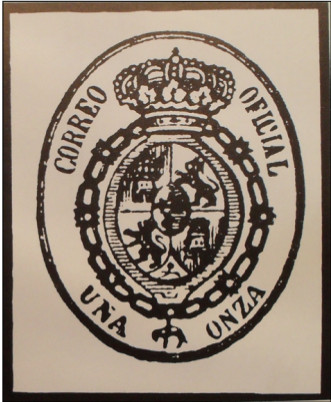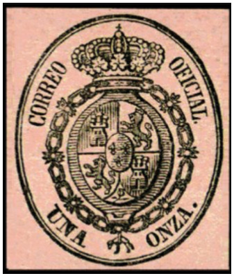 7. In the original, the location of the inscriptions ‘CORREO’ and ‘OFICIAL’ is horizontally level at the bottom (the ‘C’ and ‘L’) but not at the top (the two ‘O’s). In the forgeries, both the top and bottom are level. The same applies for the final and initial letters of the lower inscription (‘UNA ONZA’).