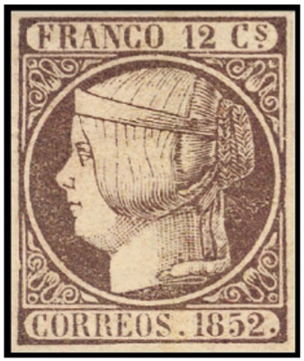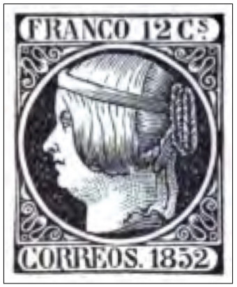 The first time this illustration appears in a philatelic publication is in 1863 (Ref. 5). Three months earlier, another illustration of a Spanish stamp that we also consider a copy of a forgery had appeared in the same review, but, as far as we could find out, it was never described or mentioned as such in any publication.