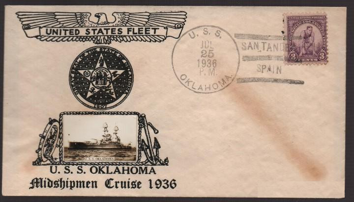 At the outbreak of the Spanish Civil War in July of 1936, the U.S.S. OKLAHOMA, the U.S.S. CAYUGA and the U.S.S. QUINCY (C)- were ordered to form the Spanish Service Squadron until they were replaced in late August and early September. Hereinafter all references to United States Naval ships will delete the term “U.S.S.”.