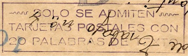 “SOLO SE ADMITEN / TARJETAS POSTALES CON / 20 PALABRAS DE TEXTO”