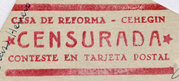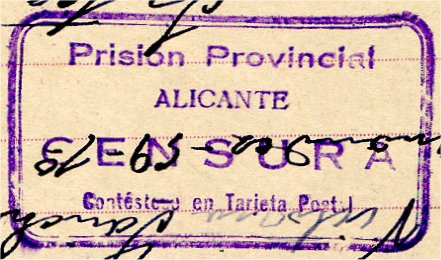 “Prisión Provincial / ALICANTE / CENSURA / Conteste en tarjeta postal”