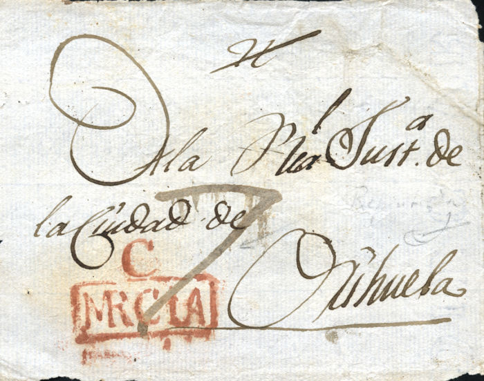 1- Pre-philatelic postal history: until 1850. All kind of wrappers, folded letters and covers with marks previous to the issue of the first Spanish stamp. Some of these marks were used even after the first stamp appeared.